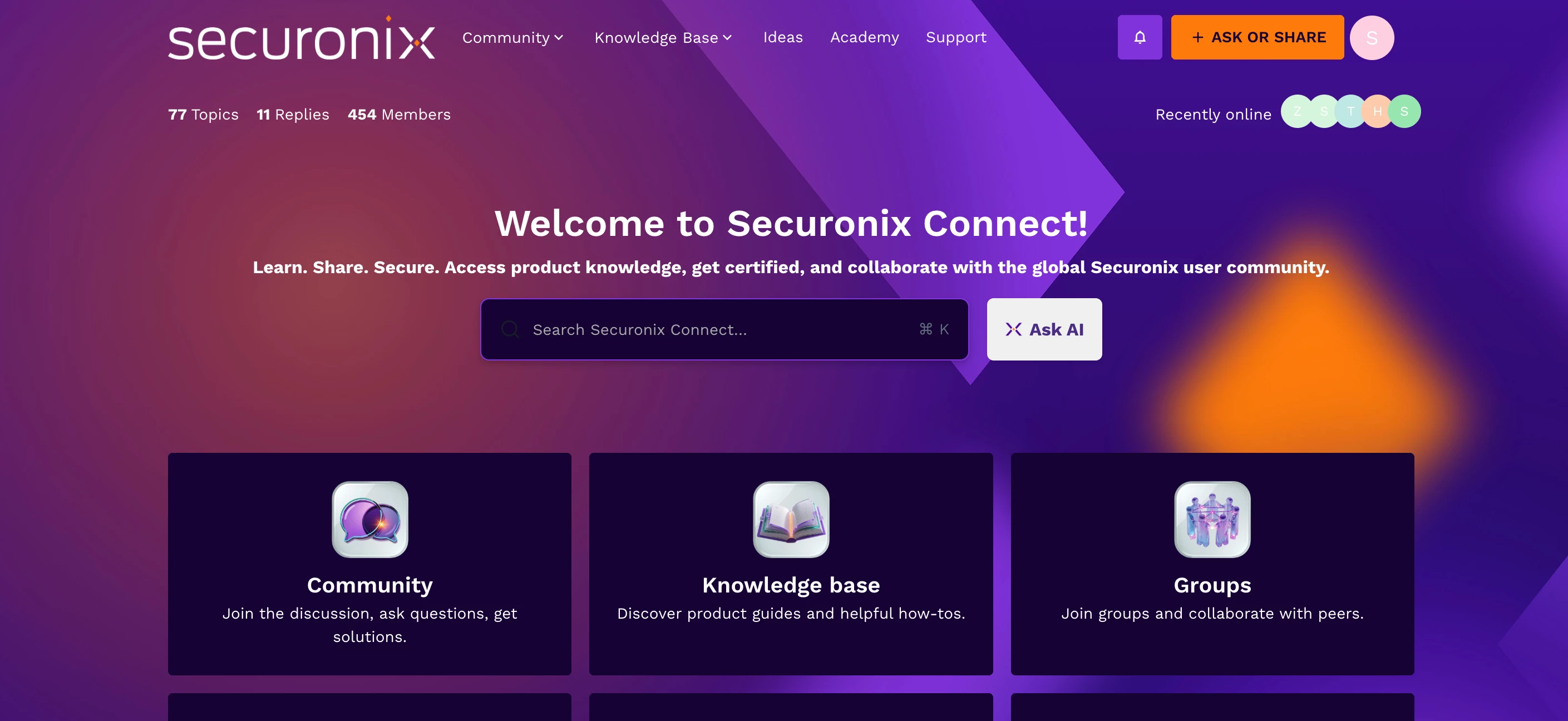 Users need access to Securonix Connect and the Securonix Academy for training, documentation, and community resources but are unsure how to register or log in.