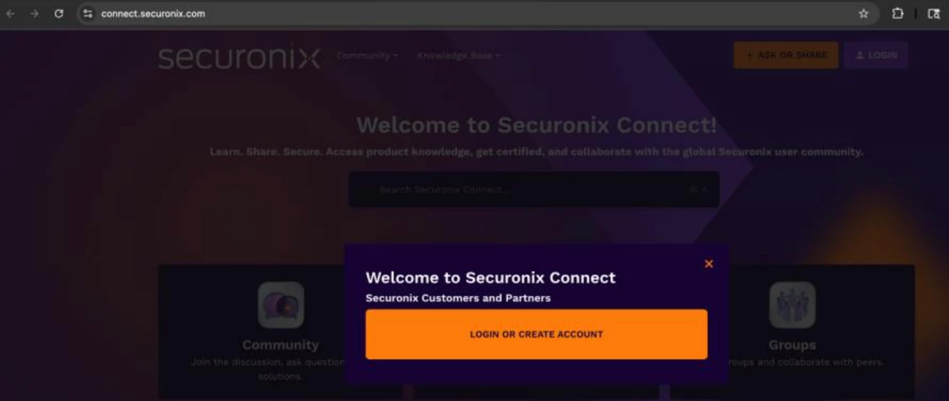 ⚠️ To access the full functionality of Securonix Connect and the Academy, users must log in with a registered account. First-time users must create a login before accessing these resources.