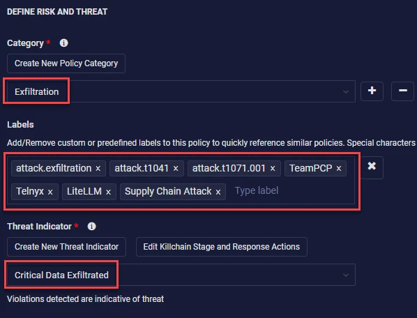 The next section of the initial details can be filled in however you or your organization wants to define the risk and threat of this policy. However, I am going to use what’s in the provided detection