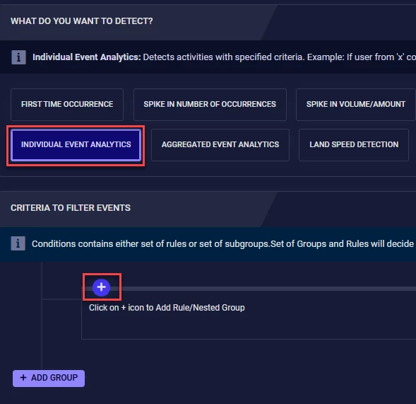 Now we need to click the ‘ADD GROUP’ button to build the next two detection groups. Follow the same process for the first group.