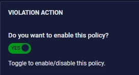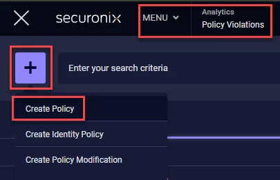 First, lets navigate to the Policy Violations section in the Security Command Center Menu. Click the ‘ + ‘ icon and then click the ‘Create Policy’ context menu option