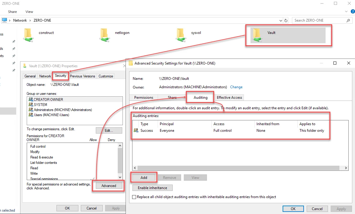 # Define canary file locations$CanaryLocations = @( "C:\Users\Public\Documents\passwords.xlsx", "C:\Users\Public\Documents\admin_credentials.txt", "C:\Users\Administrator\Desktop\network_diagram.pdf", "C:\Shares\IT\vpn_credentials.txt")# Create convincing fake content$FakeContent = @"=== CONFIDENTIAL - DO NOT DISTRIBUTE ===VPN CredentialsServer: vpn.company.comUsername: adminPassword: [CONTACT IT SECURITY]Last Updated: 2024-01-15"@foreach ($Path in $CanaryLocations) { # Ensure directory exists $Directory = Split-Path -Path $Path -Parent if (!(Test-Path $Directory)) { New-Item -ItemType Directory -Path $Directory -Force } # Create the canary file Set-Content -Path $Path -Value $FakeContent Write-Host "Created canary file: $Path"}Configuring File Auditing (SACL)