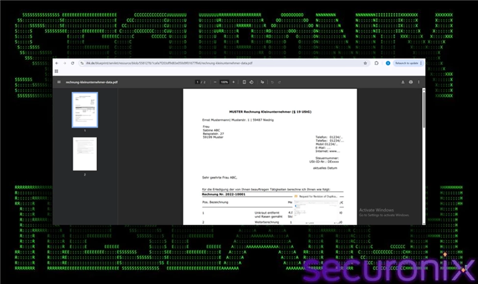 While Chrome displays what appears to be a normal invoice or financial document, background processes—such as hidden PowerShell execution, archive downloads, and persistence setup—continue silently. By presenting the victim with a believable business document, the attacker creates the perception that the executed file simply opened an expected attachment. This significantly reduces the likelihood that the user will inspect Task Manager, question network activity, or terminate suspicious processes.