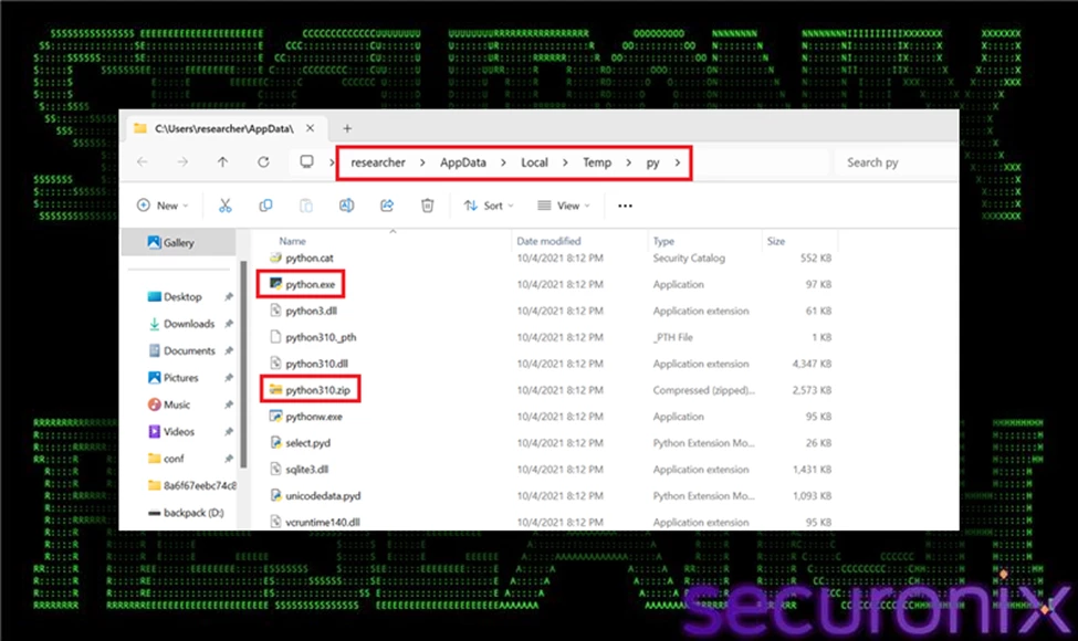 From a technical standpoint, the embedded distribution differs from a standard Python installation. It does not require installation via MSI, does not register itself system-wide, and can run directly from an extracted directory. This makes it ideal for portable deployment scenarios—precisely the capability leveraged by this malware framework.