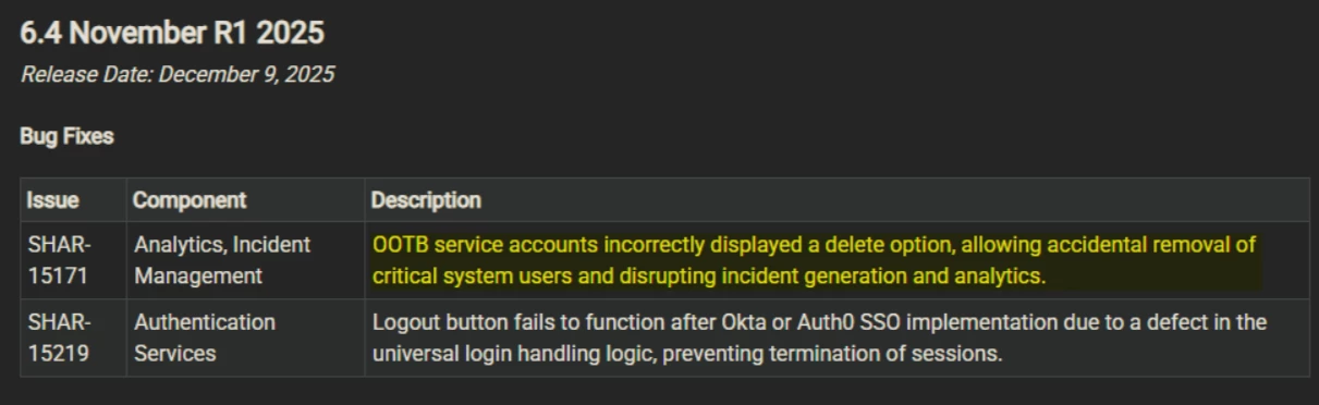 Our documentation site page detailing our platform release notes highlights that in the November R1 2025 release of our application, a bug was fixed which is currently causing some confusion.